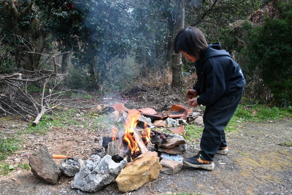 薪での風呂焚きと焚き付け(小枝や杉葉など)集めなどのほか、ちょっとした手仕事体験(暮らしの遊びは宿泊料に付帯しています。