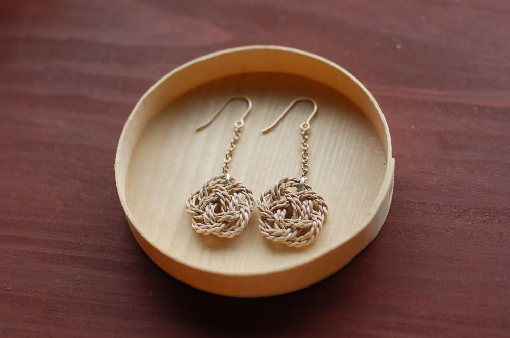稲藁や周囲の自然からいただいた草を「縄綯い」して、鍋敷きや草履、アクセサリーを作ります。