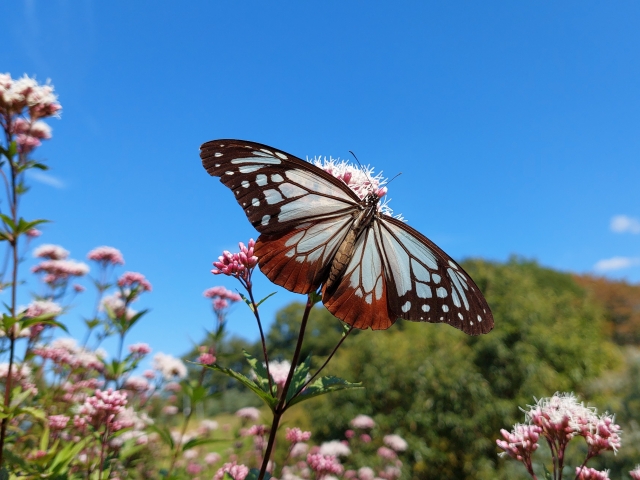 アサギマダラは、春から秋にかけて本州各地で見られる“渡り蝶”で、日本から台湾・香港まで2,000km以上を移動する”渡り蝶”として知られています。