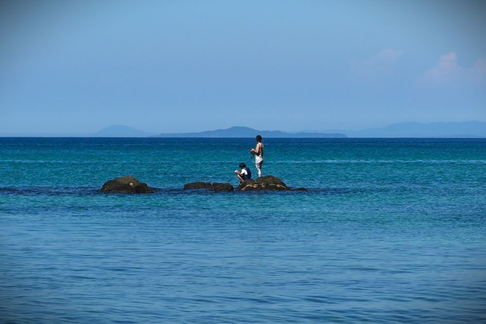 小さなお子さんは砂浜で水遊びや砂遊び、大きなお子さんは岩場でカニ探しやシュノーケリング、お父さんは釣り…という感じで家族全員で楽しめるのも魅力。