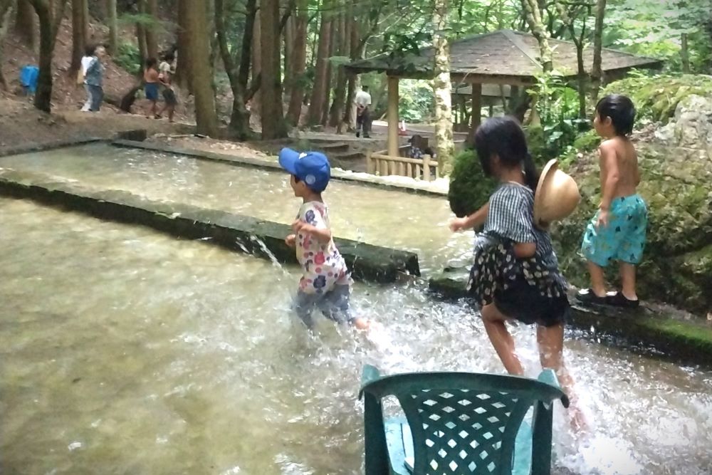 その名前の通り、綺麗な天然水で「そうめん流し」をいただける人気のグルメスポット!そうめんキャッチに子どもも大人も大興奮!渓流沿いにあるので最高に涼しく、浅いプールで水遊びもできます。