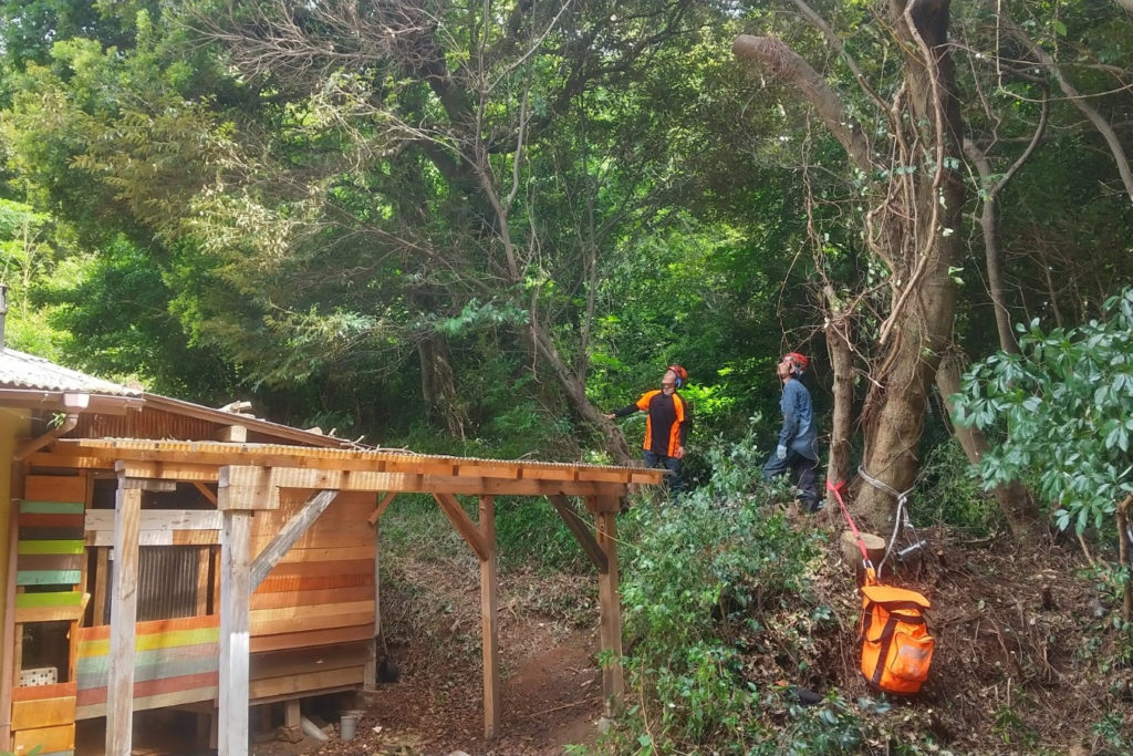 真夏の猛暑の中、作業は8時〜17時まで、2日間チェンソーの音が鳴り響きました。